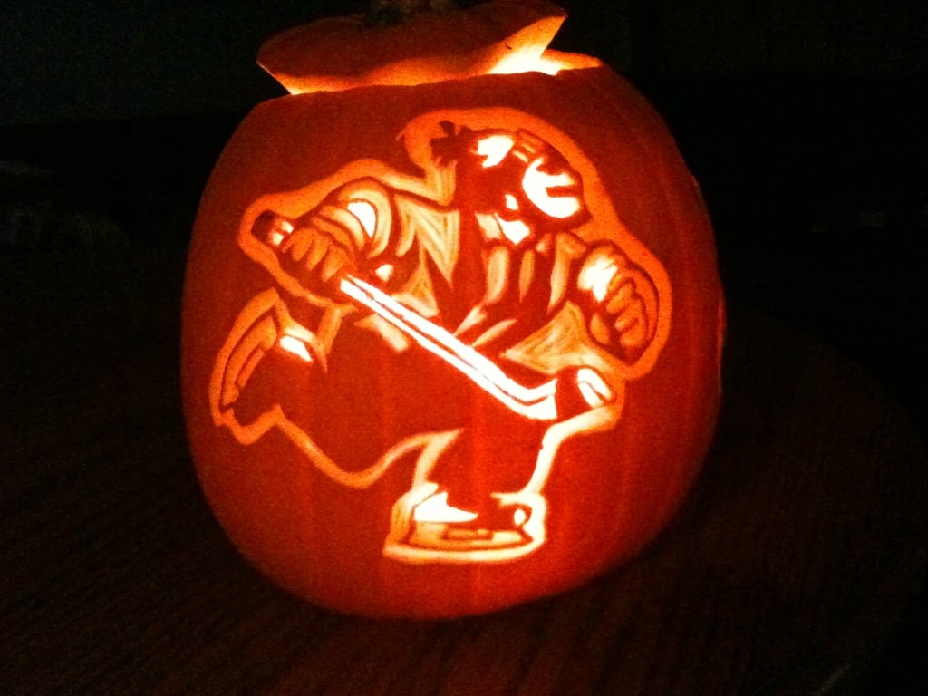 What to carve? Well there’s either something scary, or something unique. Going with the latter, it’s always cool to design something a lot of trick-or-treaters are familiar with, and in our city, that is definitely the Vancouver Canucks.