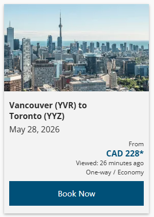 The deals for the U.S. and Canada include flights from Vancouver to Toronto, Vancouver to Los Angeles, Vancouver to Hawaii, Vancouver to Phoenix, and Vancouver to Palm Springs. All of these deals start around $200, although some are a bit cheaper and some are slightly more expensive.