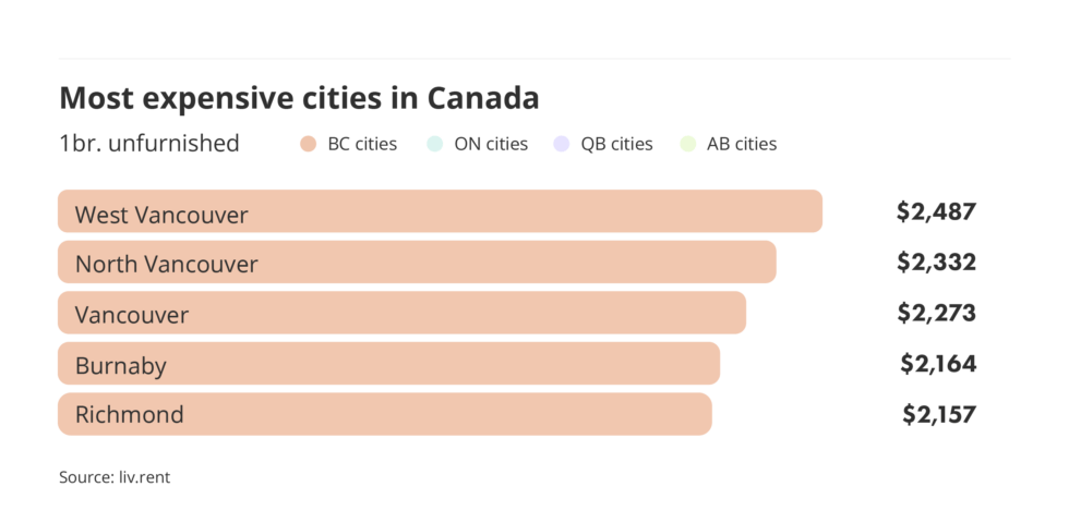 West Vancouver, North Vancouver, Vancouver, Burnaby, and Richmond have taken the crown as being the priciest spots to rent in the country.