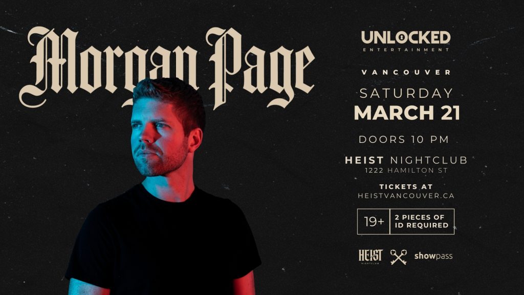 Morgan Page’s Vancouver performance will take place at Heist Vancouver, a nightlife venue that opened earlier this year in the former Bar None space in Yaletown.
