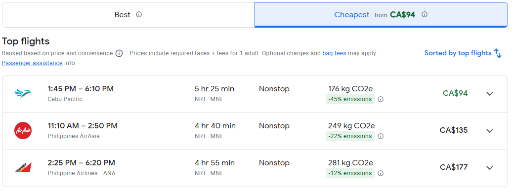 Google Flights notes that prices around this time are low, being approximately $132 cheaper than usual for the same search terms. Normally, similar trips to Tokyo cost between $460 to $600.
