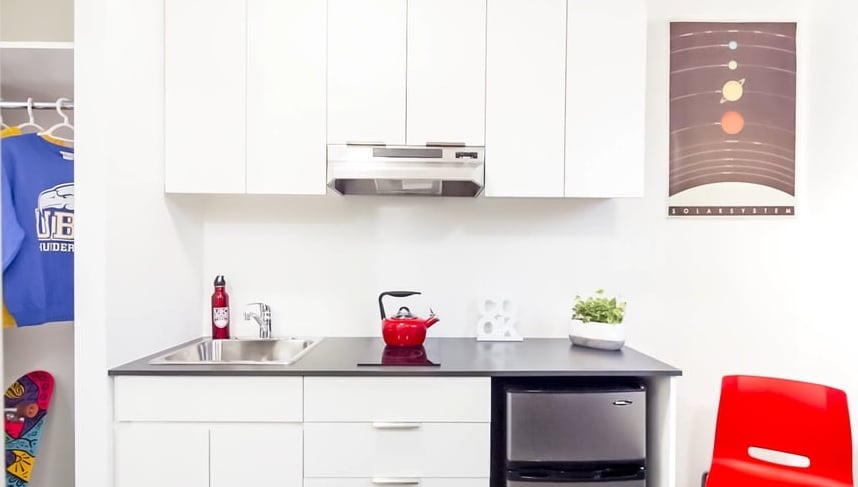 The new residence building with the nano suites will be located at the core of campus—just a 10-minute walk to most classes and three minutes from the fitness centre.