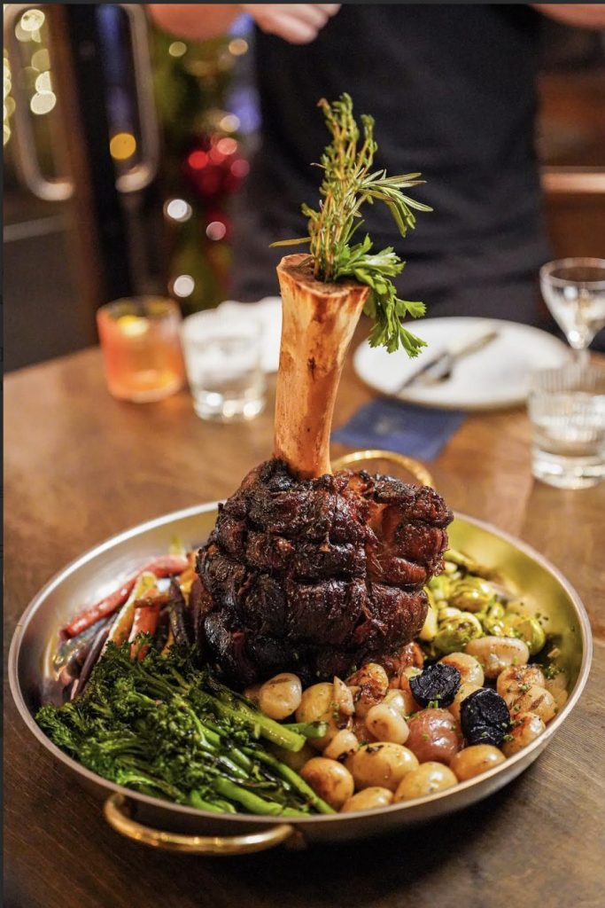 The showstopping Thor’s Hammer — a 24-hour braised beef shank with Sherry glaze, maple-glazed carrots, and red wine jus.